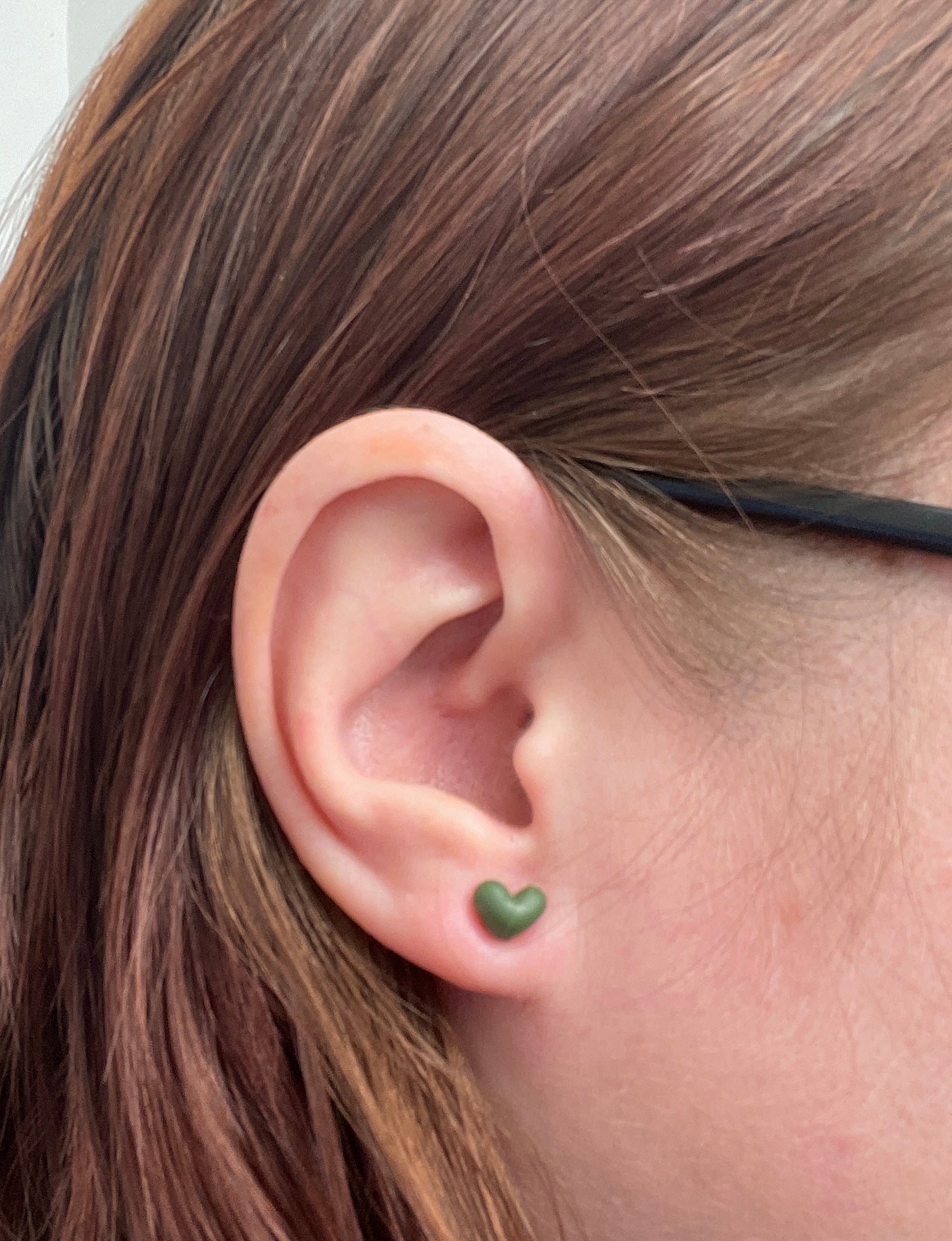 Celebrate the season with our Christmas heart studs; handcrafted polymer clay earrings in festive shades: fir green cranberry red, and rich gold. Each pair is shaped into a petite heart with a smooth matte finish—perfect for gifting, dressing up your winter wardrobe, or adding a subtle sparkle to your holiday look.
